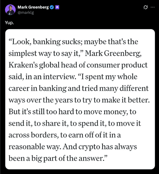 The convergence continues. Kraken moved into stocks (like Robinhood) and launched their own layer 2 solution Ink.